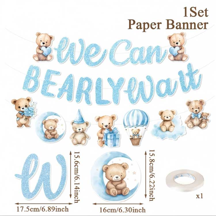 Spanduk ulang tahun: 1 spanduk / set, kanthi 2-3 tali gantung kanggo hiasan gantung; dicithak nganggo "Happy Birthday" utawa "Welcome". Teks kanthi tema bayi