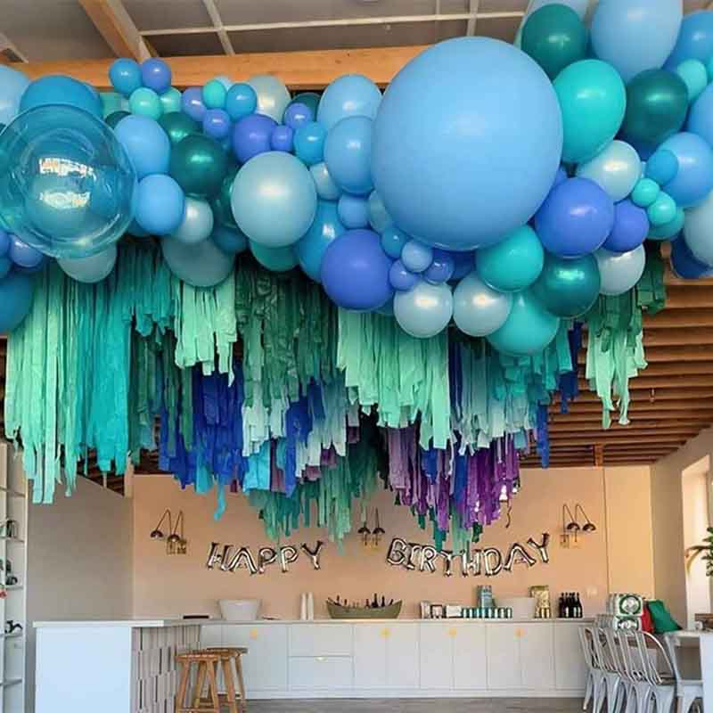 Kit balon balon biru nawakake macem-macem nada biru, kalebu warna biru, biru, biru biru lan langit biru, kanggo nyukupi kabutuhan pemandangan sing beda.