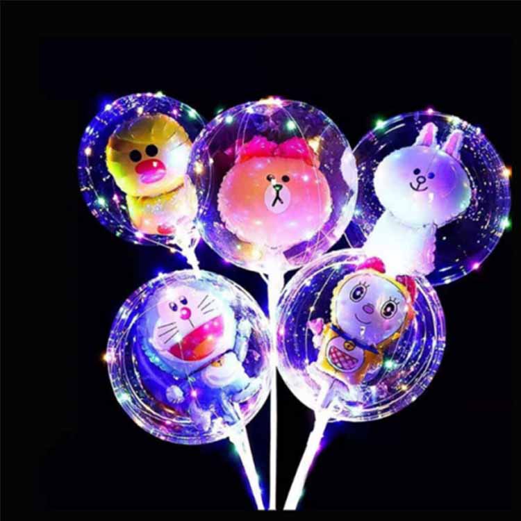 Set balon foil bobo digawe saka TPU. Iki minangka balon plastik transparan kanthi lampu lampu warna sing dibungkus. Disambungake menyang baterei ing sisih ngisor lan duwe saklar kanggo ngontrol cahya.