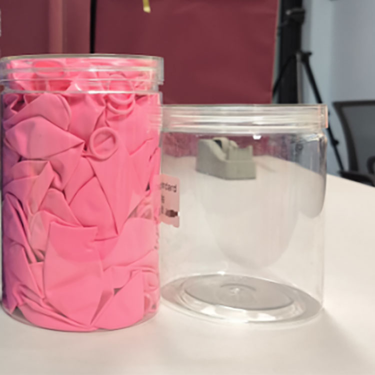 Jar plastik bening kasedhiya ing macem-macem ukuran. Kapasitas sing luwih cilik cocok kanggo nyimpen bumbu, cemilan, kosmetik, lsp. Model kapasitas gedhe cocok kanggo nyimpen panganan utawa barang kayata kacang, biskuit, alat tulis, lan balon. Iki digunakake kanthi akeh ing macem-macem skenario kayata urip kulawarga, kantor perusahaan, lan kemah ruangan.