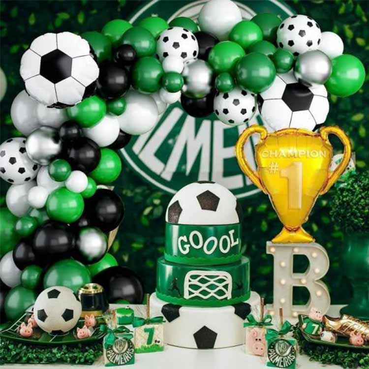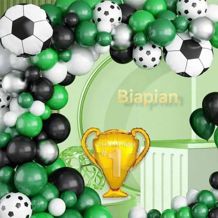 Kitab Arch Bal-balan Balapan Fitur balon ireng sing ijo lan putih minangka komponen utama, kanthi balon berbentuk bal-balan ditambahake minangka perhiasan kanggo nggawe latar belakang hiasan sing khas. Produk iki dirancang kanggo acara bal-balan, pesta tema bal-balan, kegiatan klub bal-balan, lan sapiturute, nggawe swasana sing nyenengake lan menehi inspirasi luwih akeh wong sing seneng kegiatan bal-balan.