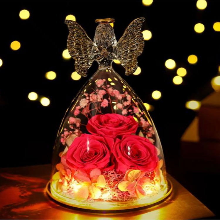Malaikat kaca kami diawetkan hadiah bunga dukungan OEM & ODM.