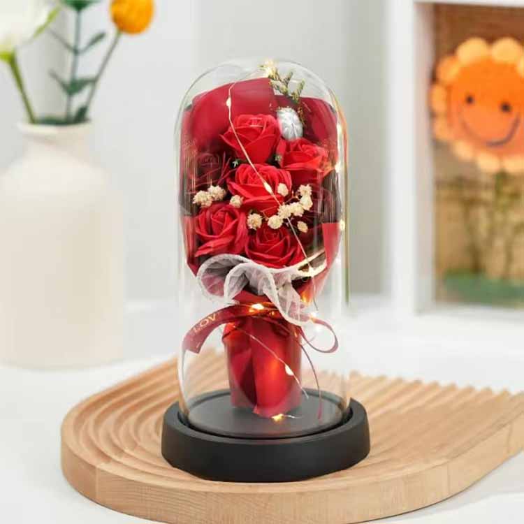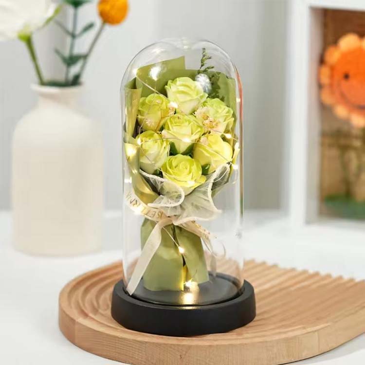 Soap Rose Kaca Soap munci karo LED digunakake ing kombinasi nganggo kembang sabun lan lampu sumunar sing dipimpin, lan warna-warni sing bisa digunakake kanggo nyukupi kabutuhan, kayata bahaya, lan sapiturute, lan liya-liyane dipasrahake minangka kembang hadiah. Kembang hadiah ora bakal garing lan ora bakal ngganti warna sanajan tutup kaca. Kembang Sabun uga bisa digunakake kanggo ngumbah tangan utawa wangi.dhikan kembang mawar ekonomi lan praktis.
