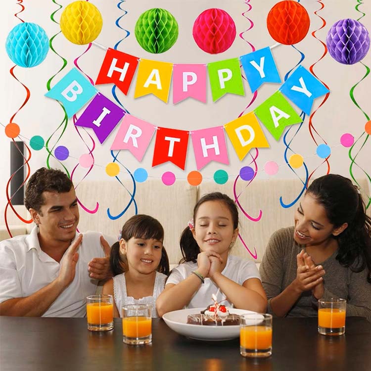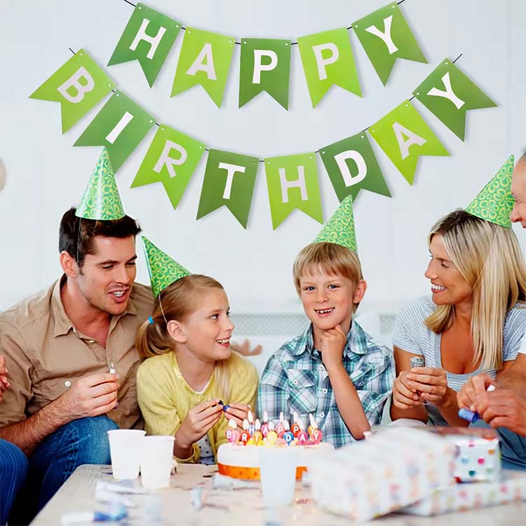 Thebendera ulang tahun sing senengApa produk spanduk sing digunakake kanggo hiasan lan nggawe swasana, biasane dicithak nganggo tembung "Happy Birthday" utawa konten pribadi. Nduwe akeh desain, kalebu macem-macem tema kayata musim lulusan, Dina Ibu, Dina Rama, lan Dina Bulan. Gendéra kasebut uga teka ing macem-macem basa, kayata Spanyol lan Inggris. Bisa nambah swasana lan dekorasi pesta kasebut.