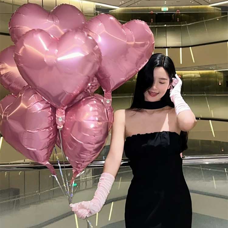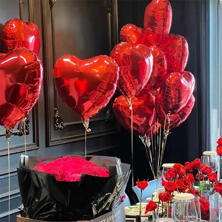 Balon aluminium foil sing bentuke ati digawe saka bahan nilon sing kenthel, balon kasebut duwe desain sing jelas sing dicithak nganggo tinta sing ramah lingkungan. Ana 50 balon saben paket.