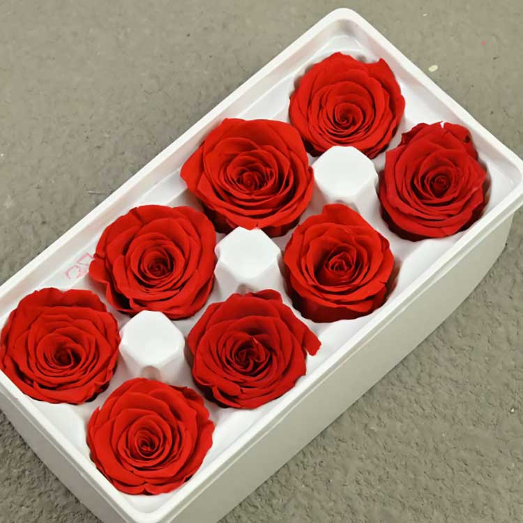 Mawar sing diawetake, uga dikenal minangka kembang sing ora bakal luntur, digawe saka mawar seger Grade A, sing ngalami luwih saka sepuluh langkah pangolahan kompleks, kalebu dehidrasi, bleaching, pewarnaan maneh, lan pangatusan. Produk kasebut njaga tekstur alus lan bentuk alami kembang seger nalika ndawakake wektu mekar. Kanthi panyimpenan sing tepat, bisa tahan nganti 3-5 taun.