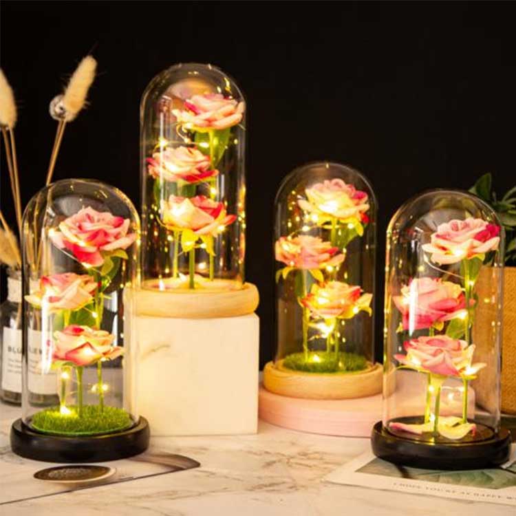 Dome kaca mawar minangka barang hiasan sing bisa nggawe swasana romantis. Bisa digunakake minangka hiasan perabot, diselehake ing desktop utawa ing jalur, yen aman kanggo nindakake; Bisa diwenehake minangka hadiah ing acara kayata ulang taun, Dina Valentine, Ulang taun, utawa minangka cenderung; Lan uga bisa diselehake ing kantor kanggo nambah vitalitas.