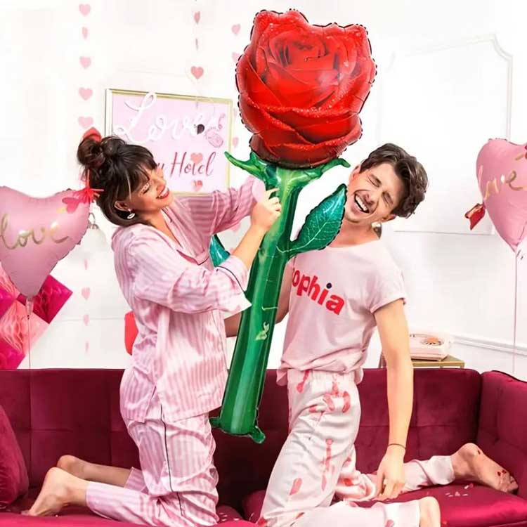 Balon foil sing bentuke mawar ora mung ornamen - padha nggambarake perasaan romantis lan anget. Kasedhiya ing macem-macem werna populer (Romantic Red, Soft Pink, etc.), padha bisa selaras kanggo cocog karo kabutuhan loro wholesalers lan pelanggan. Sampeyan bisa ngatur logo merek, slogan utawa desain kanthi printing definisi dhuwur, tanpa luntur utawa burem, sing bakal mbantu sampeyan unggul ing pasar sing kompetitif.