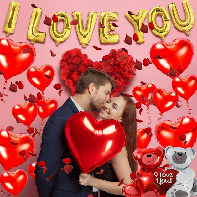 Balon foil Day Valentine nampilake slogan manis kaya "aku tresna sampeyan" lan "Happy Valentine Day." Balon kasebut teka ing warna abang, jambon, lan emas sing sregep, nggawe efek telung dimensi nalika ana suasana, kayata mawar, lan lambe sing bisa diajukake adhedhasar setelan lan gaya tartamtu.