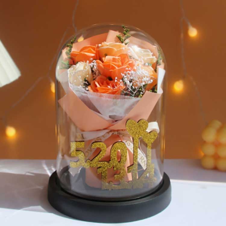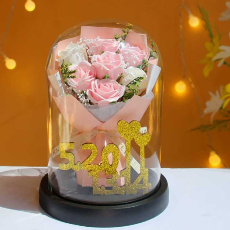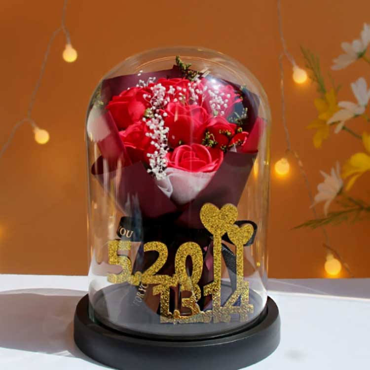 Bouquet mawar kaca iki dirancang kanggo nyegah kembang layu, lan mawar ing njero ora bakal luntur. Bouquet banget urip, meh bisa dibedakake saka kembang asli, lan bisa nampilake kaendahan buket kanthi apik. Ing njero, angka emas 520 + 1314 makili angka 520 lan 1314, nglambangake katresnan lan nyorot keprigelan hadiah iki.
