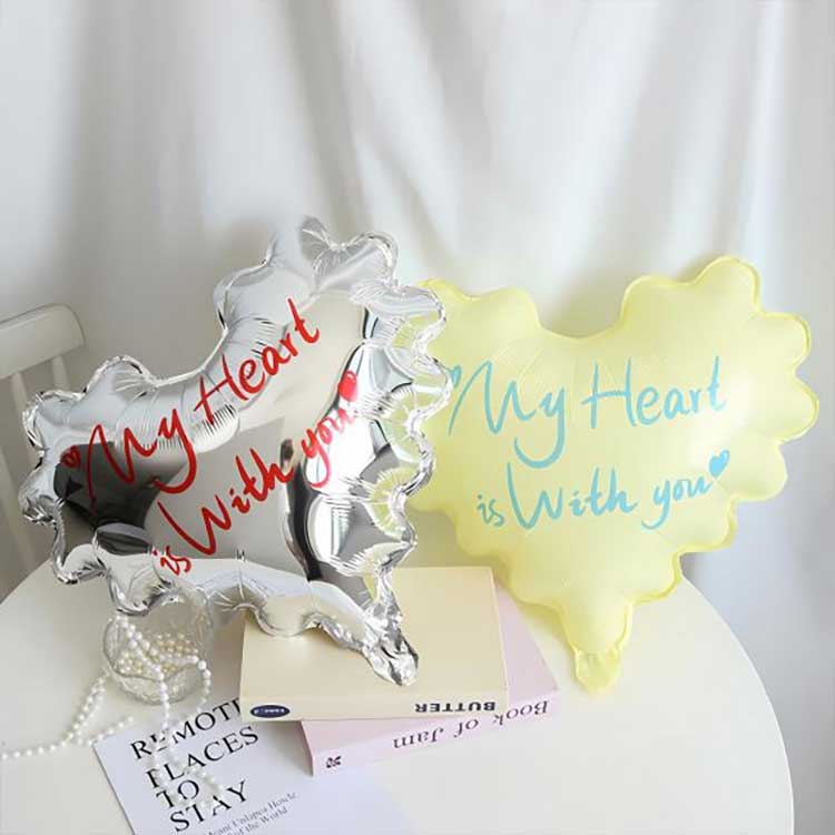 1. Desain Unik: pinggiran wavy nambah corak kreatif ing wangun klasik saka jantung, nggawe metu saka balon standar.